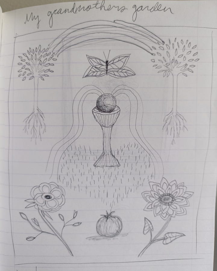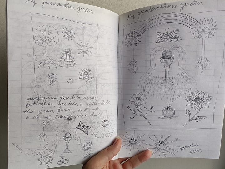 To the external eye, it might not seem alchemical or transformative in any way, but just brainstorming ideas and drawing out symbols that reminded me of her and her garden has already helped me shift my thinking, focusing more on the good times we shared and her inner beauty as a person. I noticed that what was initially heavy and dark soon became light, as the feelings of grief slowly morphed into an appreciation of past experiences we shared together.